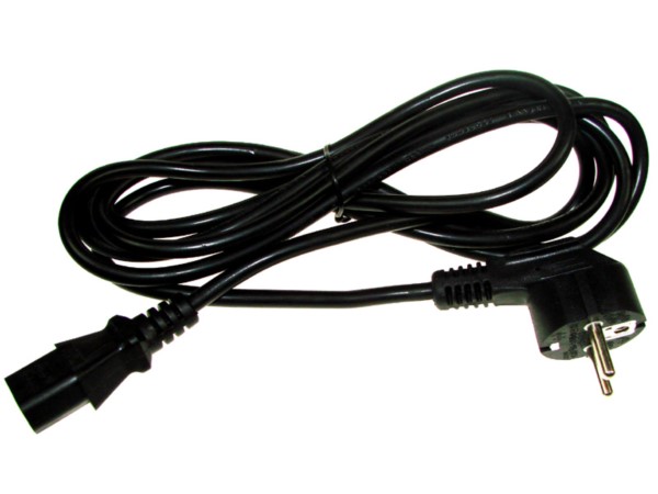Kabel zasilający, długość 3m z zalewanym kątowym wtykiem sieciowym Schuko i prostym gniazdem IEC-320- C13. Grubość przewodu 3x0,75mm; 10A i 250V. Posiada znaki bezpieczeństwa NF, DVE, CEBEC i KEMA KEUR.