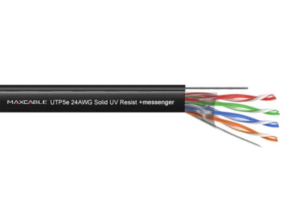 Przewód UTP5E drut Cu UV+ linka nośna 500m MAXCABL